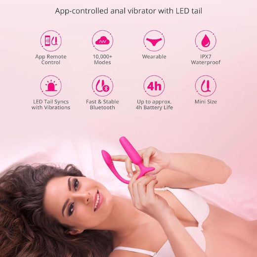 Materials: Body-safe silicone body with ABS plastic in the optional LED tail; IPX7 waterproof for thorough cleaning.