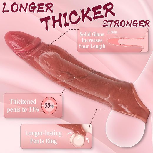 Realistic penis sleeves are stretchable sex toys that fit over the erect penis to add length, girth, and lifelike texture, boosting confidence and sensation for men during intercourse or masturbation.